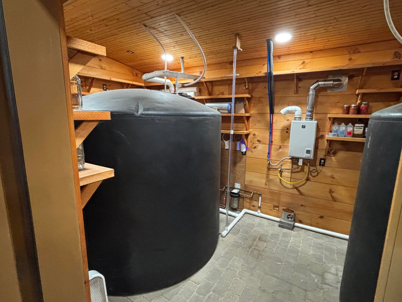 Thoughtfully designed for self-sufficiency, the property features dual water systems with two main lines—one for well water and one for rain collection—both filtered to 5 microns and fully interchangeable. Two cisterns provide a combined capacity of 7,000 gallons, ensuring a reliable water source. Newly installed Source hydro panels (March 2025) produce an average of 4.5 gallons of drinkable water per day, with a transferable warranty for added peace of mind.